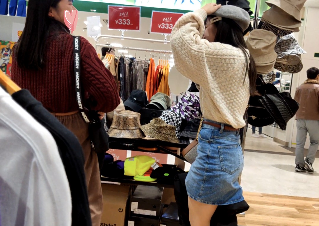 デニムミニスカのおっとり系可愛い子が友達とお買い物。