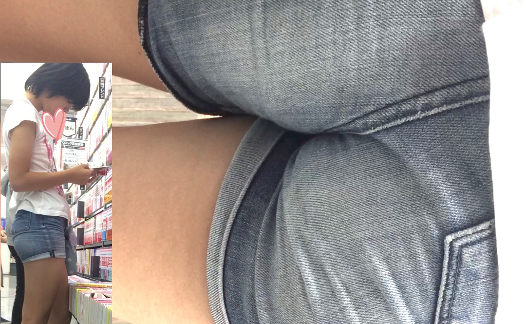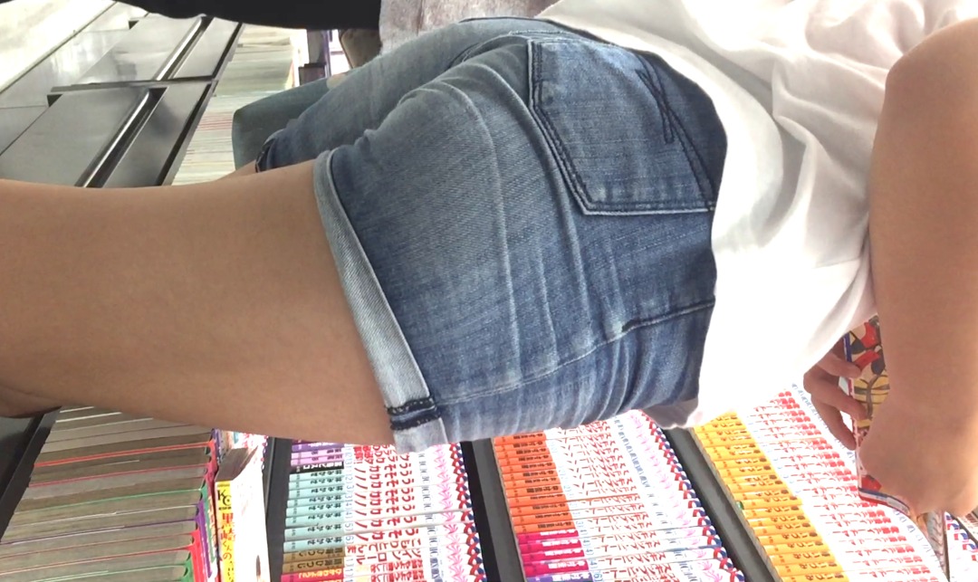 デニムのホットパンツでパツパツのお尻!
