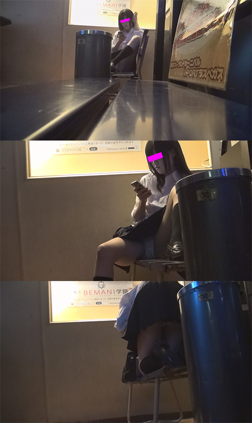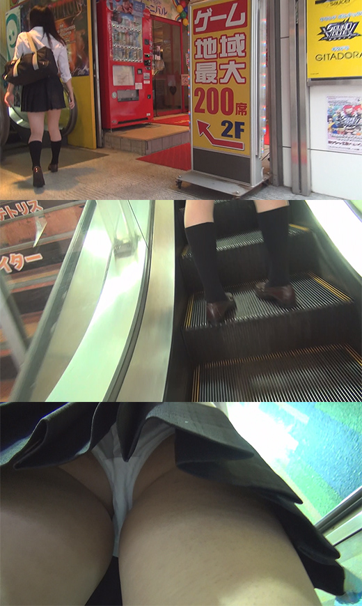 ※内容:ゲームセンター入り口のエレベーターで逆さパンチラ→M字正面→四つん這い後ろパンチラ